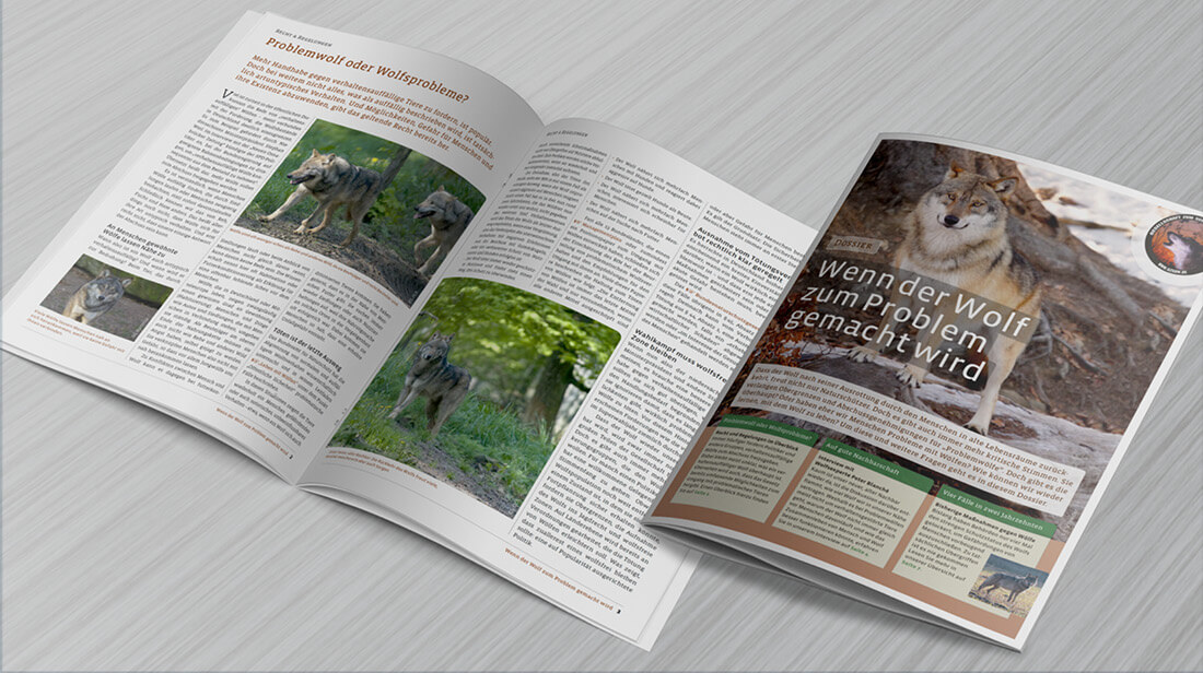 Der Wolf war bei uns längst ausgerottet – nun besiedelt er wieder alte Lebensräume neu. Das freut viele ganz und gar nicht. Denn alte Ängste werden hier geschürt und mehr Handhabe gegen verhaltensauffällige Tiere zu fordern, ist populär. In dem von KONTURENREICH für die Gesellschaft zum Schutz der Wölfe e. V. gestalteten Dossier erfährt man, wie wir wieder lernen können, mit dem Wolf friedlich und angstfrei zu leben.