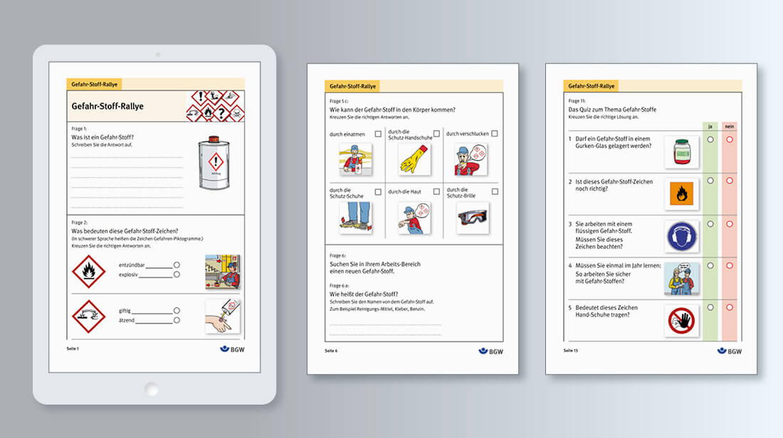 Für die BGW entwickeln wir barrierefreie und ausfüllbare Arbeitsmaterialien in leichter Sprache. Diese Materialien richten sich an Menschen mit kognitiven Einschränkungen und sollen sie bei Themen wie Arbeitssicherheit, Gefahrstoffen und Brandschutz unterstützen. Ziel ist es, verständliche Informationen bereitzustellen, die eine sichere und selbstständige Teilnahme am Arbeitsalltag ermöglichen.